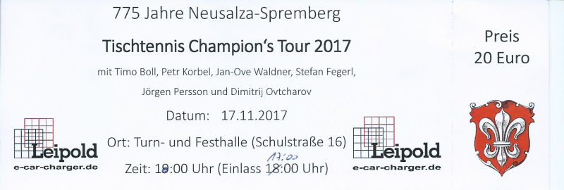 Am 17.November hält die Tischtennis-Champions Tour in Spremberg. Neben der deutschen Legende Timo Boll kämpft unter anderem der World-Cup Gewinner Dimitri Ovtcharov um die diesjährige Trophäe. Wenn du Interesse hast, dann kannst du dich ab sofort an unseren Vereinsvorsitzenden Peter Stahl wenden, der zwei Tickets kostenlos verschenkt. Spitzensport ist garantiert!!!